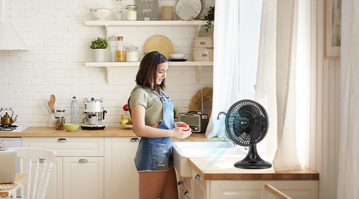 If you have limited ceiling height in your kitchen, consider low-profile or flush mount ceiling fans.